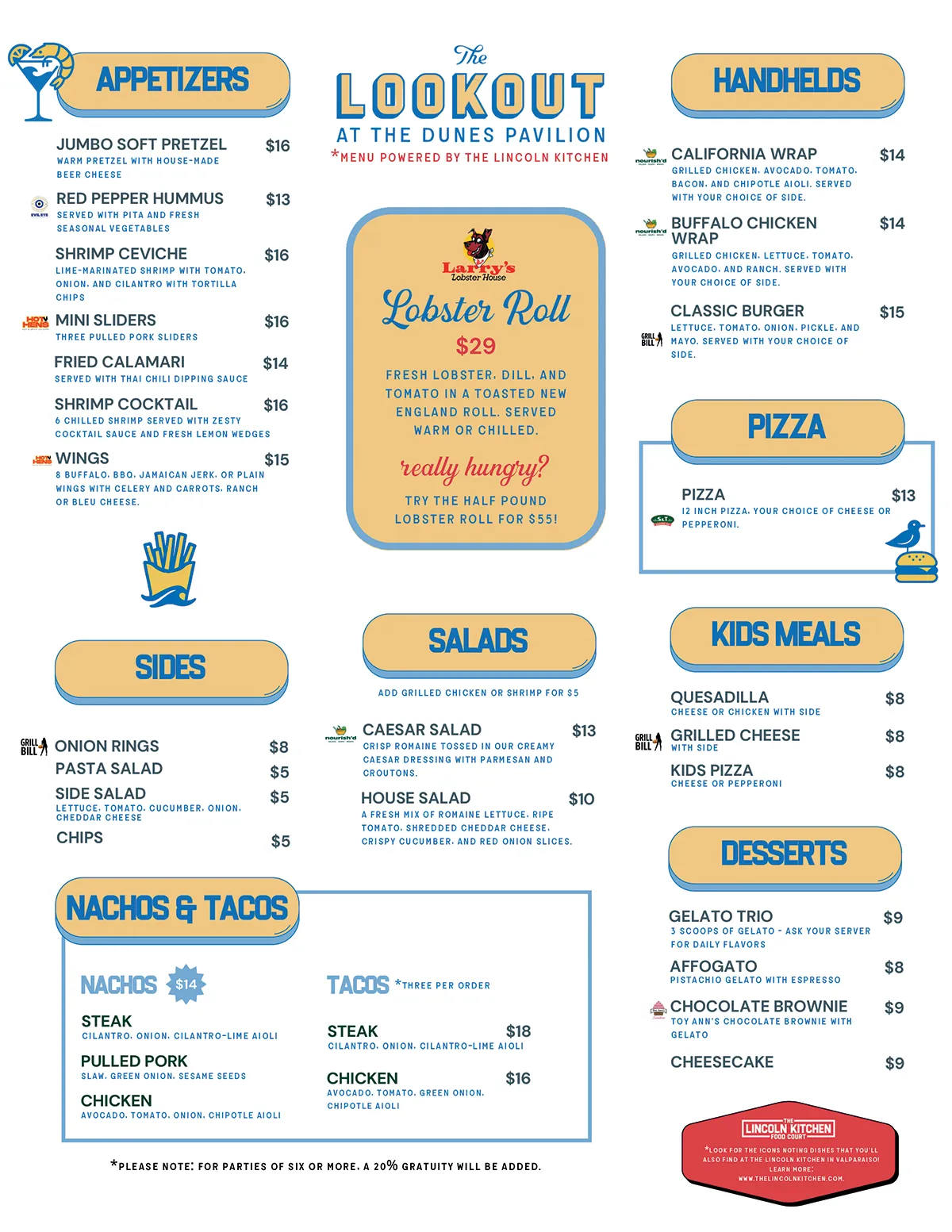 Elevate Your Event with our onsite Venue Coordinat As the shadows grow longer and the nights get cool Just a few more days before we close the Pavilion The Pavilion has a rich history since its establis There's nothing sweeter than booking your events w Come for the beach, stay for @dunespavilion ❤️ Who's ready for tacos at Dunes Pavilion Rooftop?! Orange ya glad it's the weekend? 🍊🏖️☀️ Closed for the season LunchDinnerDrinks